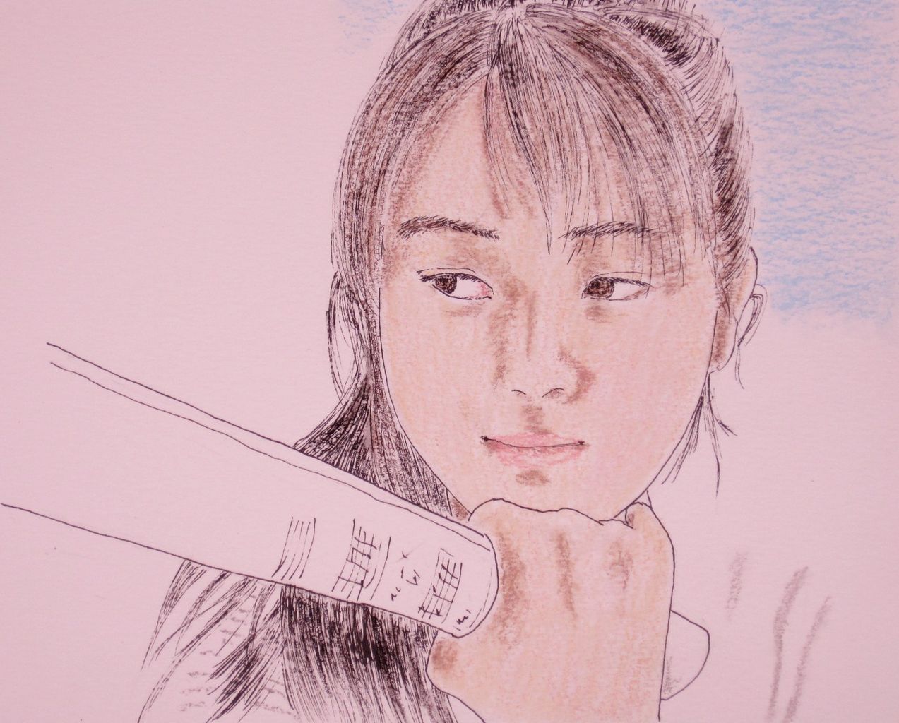 今、『優嵐スケッチブック』に描いている絵はクレオロールとゲルマーカーで彩色しています。基本的にはクレヨンと同類ですから、描いた後に定着させる必要があり、ホルベインのクレヨンコートを使っています。これは有機溶剤なので、吹きつけは屋外でおこなっています。このところ、雨続きで定着していない絵が何枚かたまっていました。