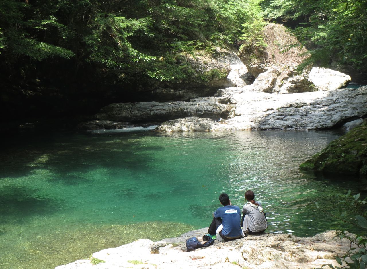 ここからはみたらい渓谷に沿って、洞川(どろがわ)温泉まで歩きました。近畿随一の美しさといううたい文句は嘘ではありません。渓流は翡翠色に澄み、そこで鮎を釣っている人や、川遊びに興じている人たちの姿を見ました。渓流沿いに歩いているととても涼しく、水の力は凄いもの、と思いました。