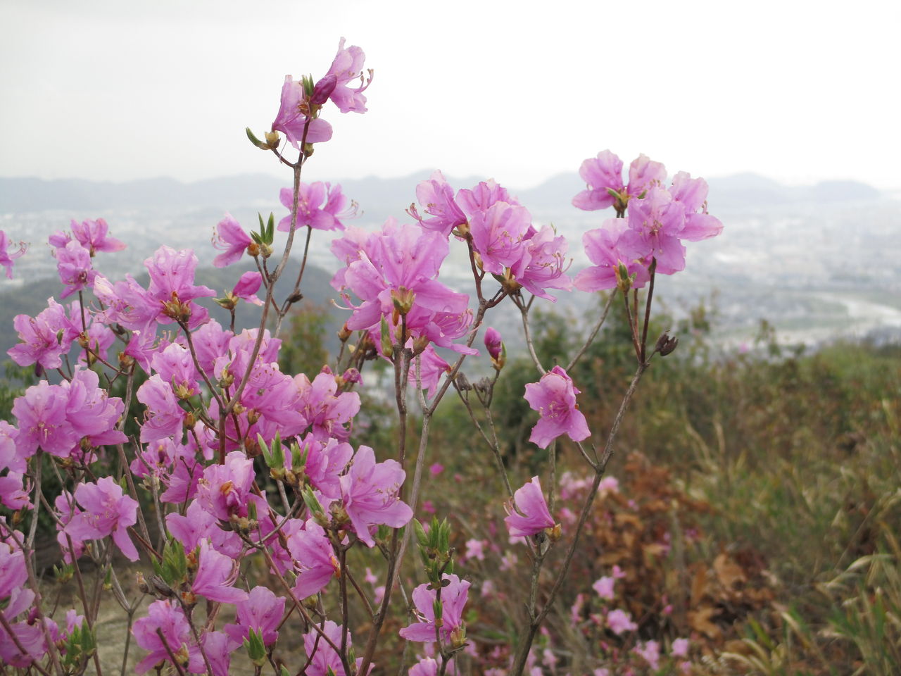 このままお天気は回復するのかなと思いつつ、増位山に散歩に出かけました。頂のかたわらでザイフリボクが白い花を咲かせていました。四手桜(シデザクラ)との別名があります。コバノミツバツツジもあちこちに咲いて自然歩道の周囲は薄紫からピンクに彩られています。