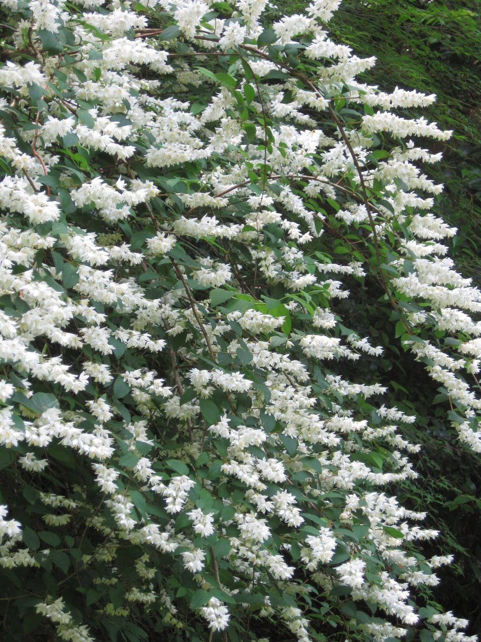 国道29号線から林道黒尾線に入り、終点近くで車を停めました。先日の台風の影響で林道に杉の若木が倒れており、終点の駐車場までは行けませんでした。終点まで歩く道すがら、道路脇にウツギの一種が咲いており、甘い香りがしていました。