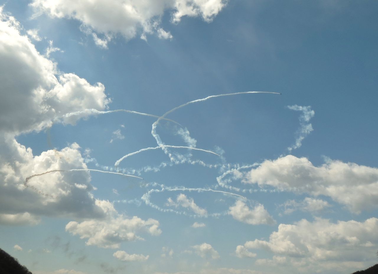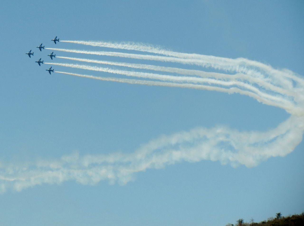 あの飛行は法要の後の法宴でも話題になっていて、近隣の高い建物の屋上はいずこも満員だったそうです。従兄は近くの丘の上から撮影していましたが、それでも木で飛行が遮られる部分があり、家のベランダから全天の飛行ショーをくまなく見られたのは随分ラッキーなことだったのだと思いました。