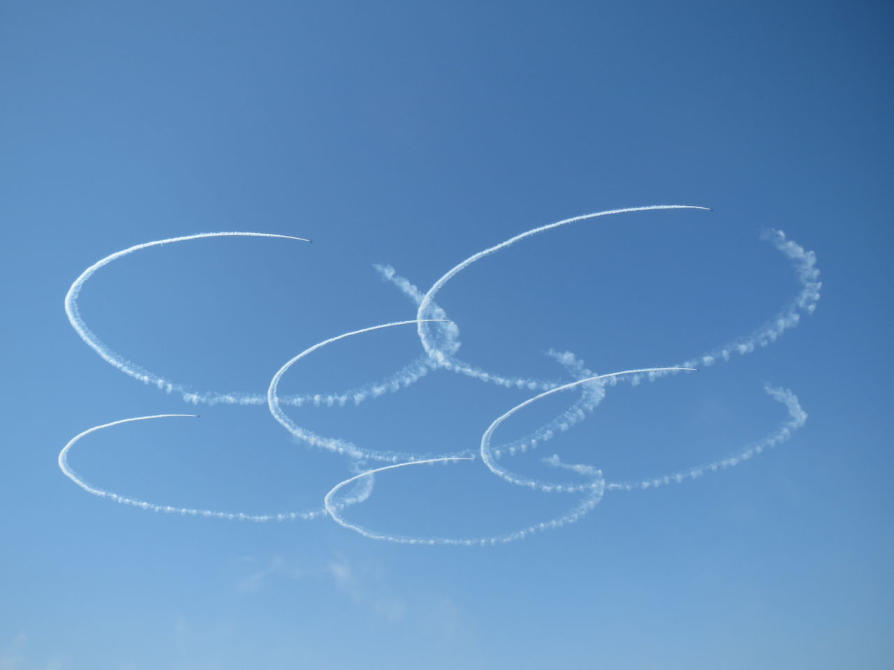 (4) サクラ 6機が進入して上空で旋回して6つの輪を重ね合わせて、サクラの花を描く