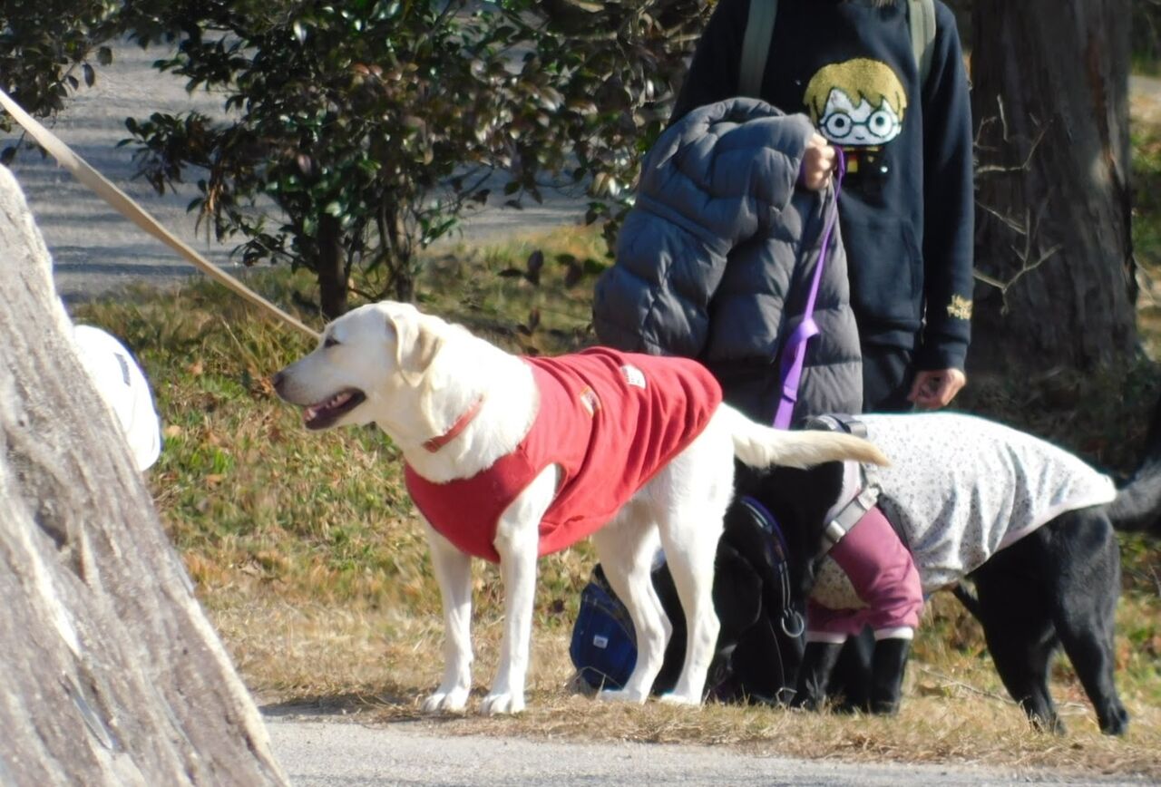 2020年12月30日 大型犬連れ立ち散歩年の内 ◆年の内 湖岸を散歩しているのは人だけではありません。大型犬を連れたグループにも会いました。十人ほどで、犬もそれくらいいましたから結構目立ちました。こういうところで散歩するのは犬も人も気持ちがいいでしょう。