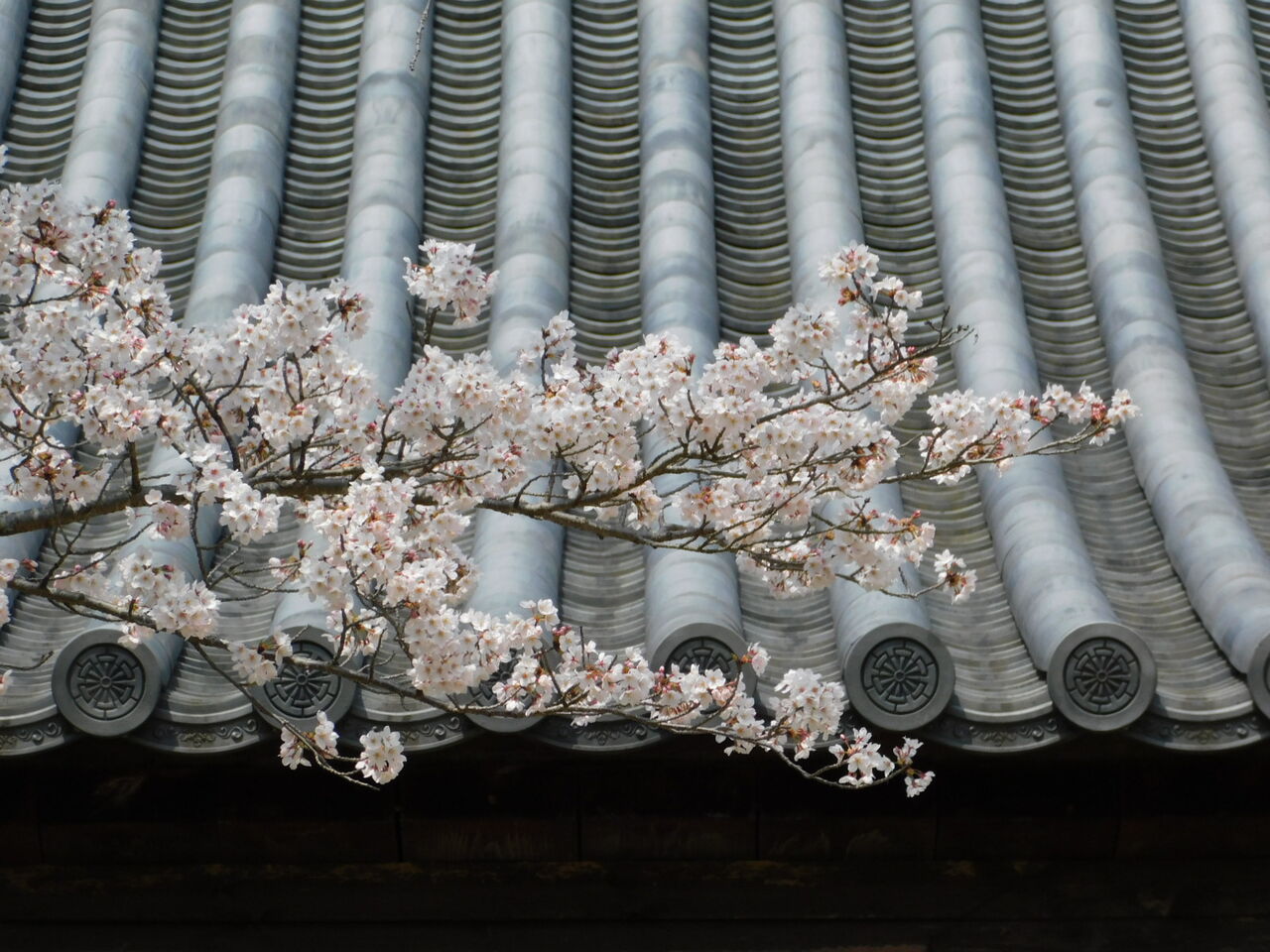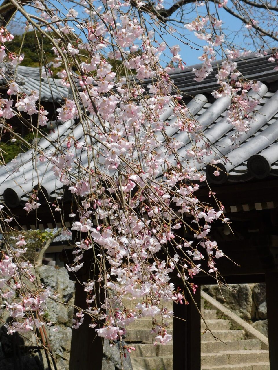 2021年03月30日 本堂へ枝さしのべし花満開 ◆花 増位山随願寺本堂前のソメイヨシノがほぼ満開になっています。本堂は1666年再建の国指定重要文化財です。寺院建築の屋根瓦は日本独特の美しさだと思います。瓦の並びと同時にそれが作り出す曲線の美、瓦の色彩もまたいいんですよね。