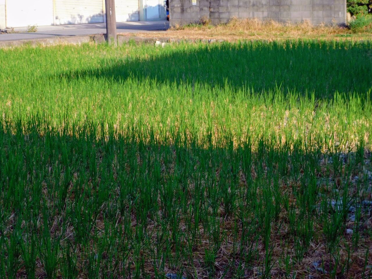 2021年10月22日 朝日さす家並みの影ひつじ田に ◆ひつじ田 周囲の稲刈りはほとんど終わりました。刈り取られた株からは青い穂がのびてきています。これを「ひつじ」といいます。稲の生命力の残り火ともいえ、冬に入るとやがて枯れていきます。寒くなってきました。今週末は扇風機の掃除をして片付け暖房器具を出します。