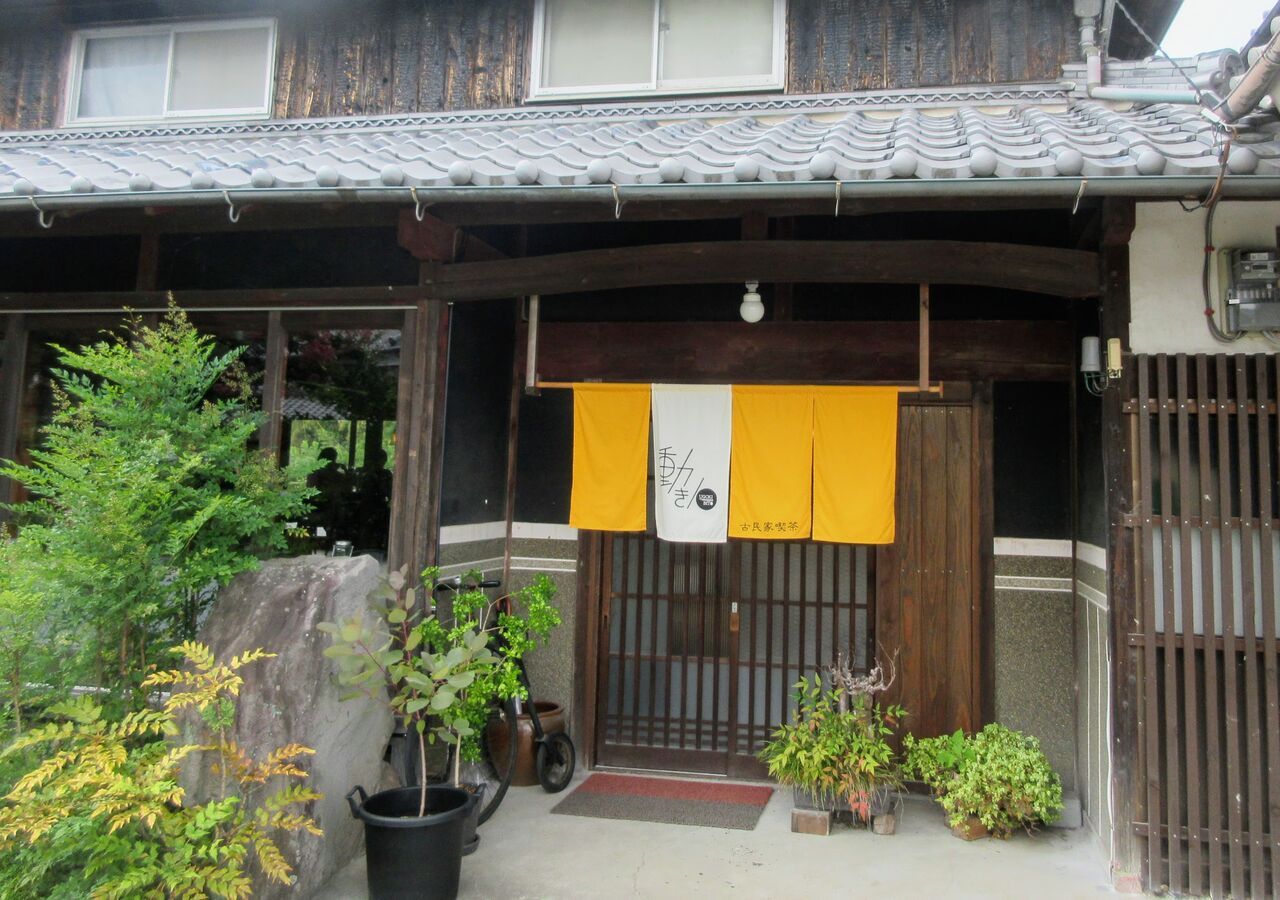 夢前川でワイルドな川床料理を満喫した後はコーヒーを飲みに移動。お隣の福崎町高岡にある「古民家喫茶動き人」へ行きました。このあたりでは古民家を再利用した店がちらほら見受けられるようになっています。ここはオーナーが5年かけて古民家を改造して作られたお店とのこと。いい感じで古民家の趣が残っています。