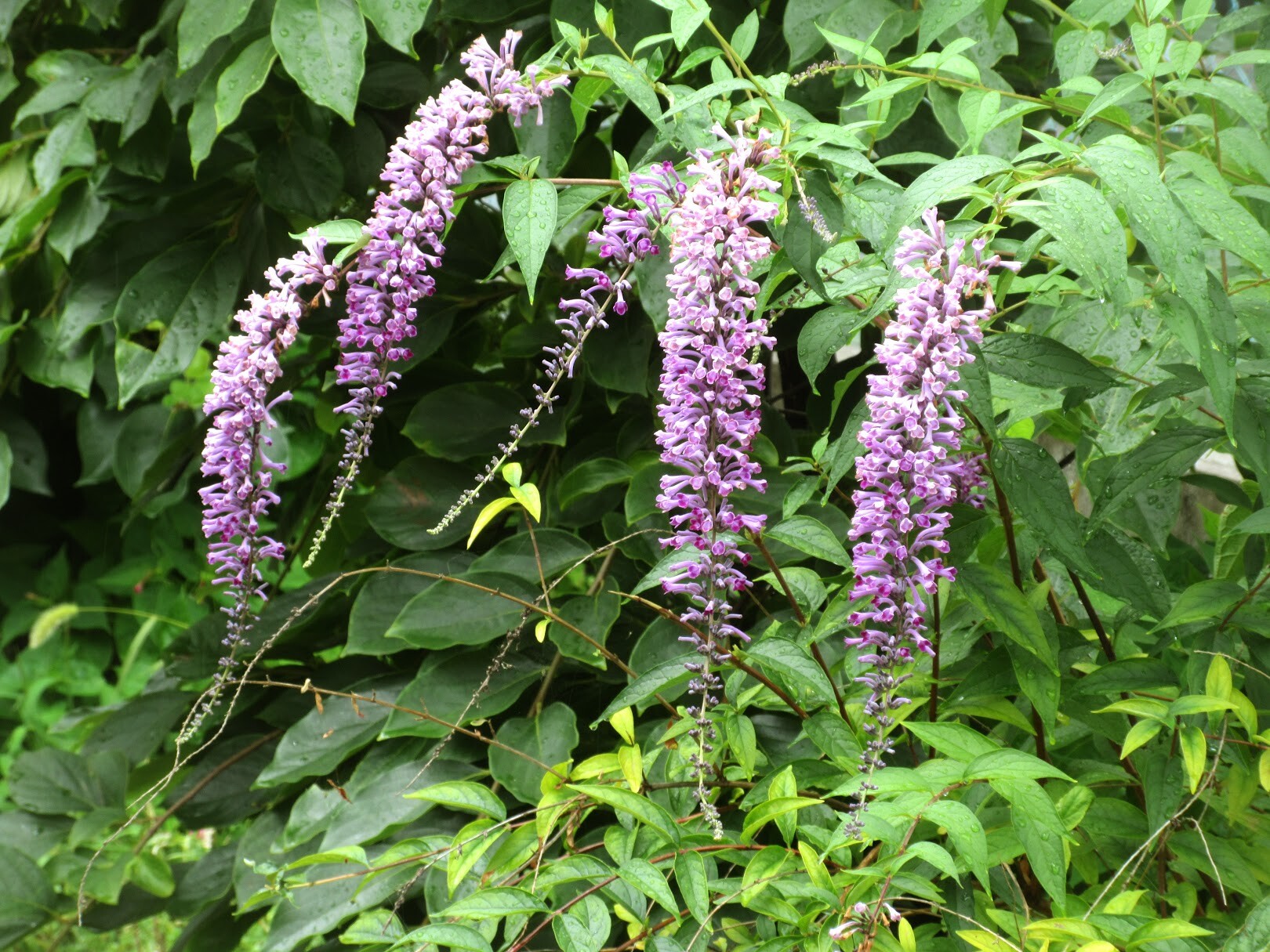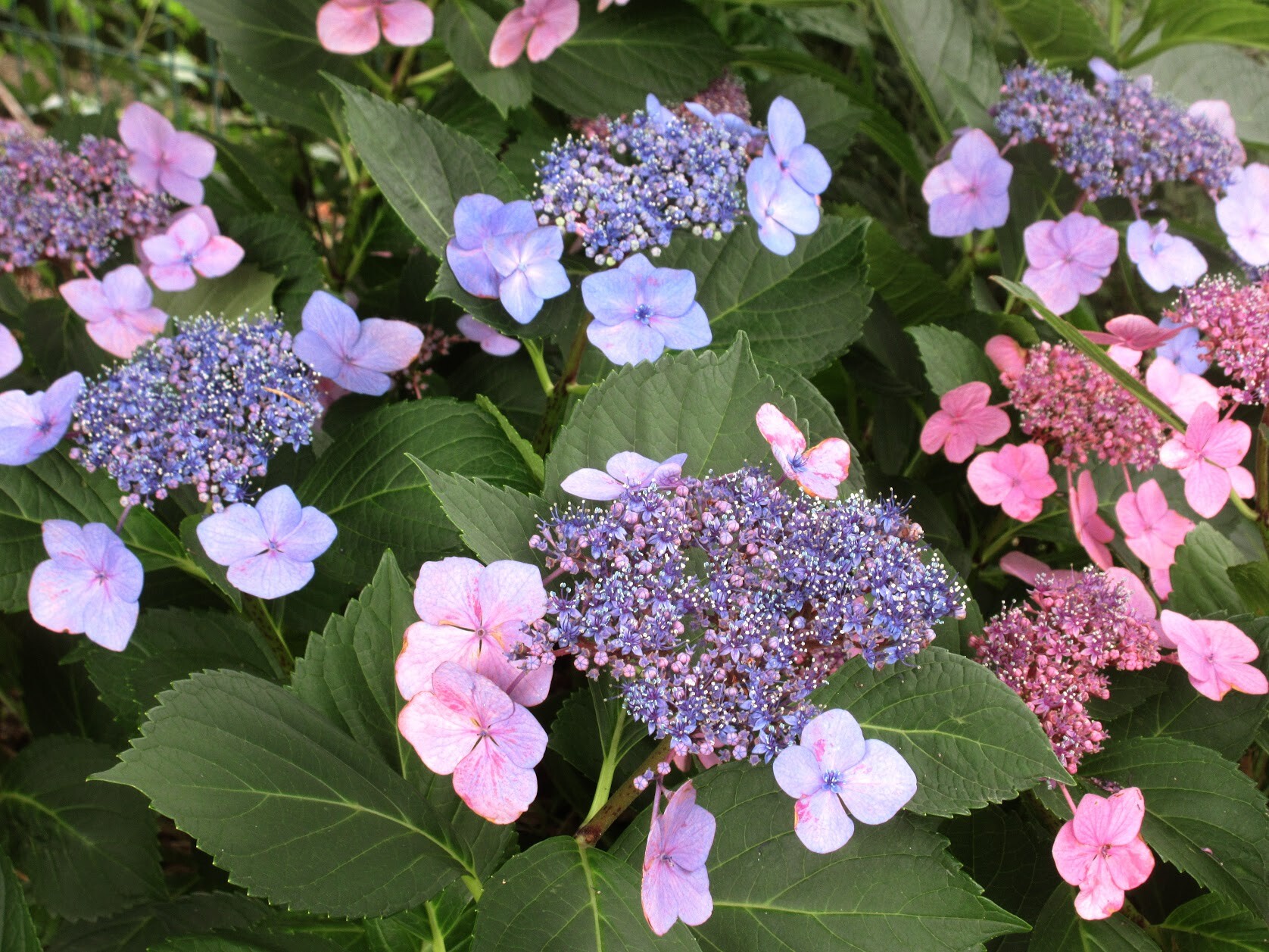 花(萼)の色が変わりやすいことから「七変化」とも呼ばれます。色の変化にかかわるのはアントシアニンの一種によるもので、ここに補助色素とアルミニウムイオンが関係することによって色が変わります。