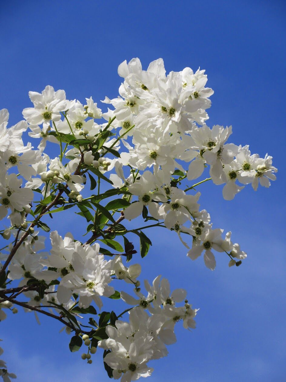 2025年04月16日 利休梅白さ輝く春青空 ◆春青空 あわじグリーン館の外の庭のベンチブランコの背後でリキュウバイが咲いていました。バラ科ヤナギザクラ属の落葉低木で明治末に中国から渡来。花の時期は4月から5月で、季語では初夏になっています。 「利休」は千利休にちなむものですが、利休の忌日(旧暦2月28日)ごろに咲き始めるからとも、茶花として広く用いられてきたからとも言われています。白い清楚な花ながら枝に集まって咲き華やかです。 カテゴリなしの他の記事 タグ :#春青空#リキュウバイ#あわじグリーン館 < 前の記事次の記事 > コメント コメントフォーム 名前 コメント 評価する リセット リセット 顔 星 投稿する 情報を記憶