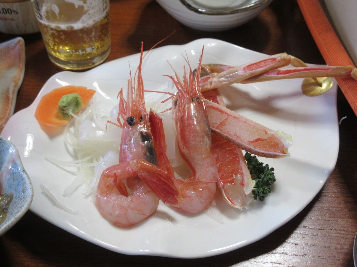 3年前に同じ仲間で出かけたことがあり、今回と同じ民宿「源助」でした。カニのお刺身、焼ガニ、カニすきなど新鮮なカニがたっぷり出て、さらに鮮魚の刺身、豚しゃぶ、カニグラタン、女将の手作りパンまでつき、最後は雑炊でシメ。当分カニはいい、というくらい食べました。