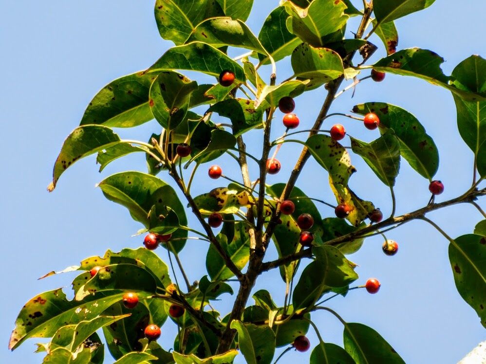 2019年12月07日 赤き実の目に鮮やかに冬めけり ◆冬めく 紅葉と同じころから木々の赤い実が目立ってきます。ナンテンの実は最も身近でよく目にする赤い実ですが、それ以外にも気をつけて見ていれば多くの赤い実に会うことができます。写真の上からクロガネモチ、カナメモチ、シロダモ、ソヨゴです。 タグ :#クロガネモチ#カナメモチ#シロダモ#ソヨゴ