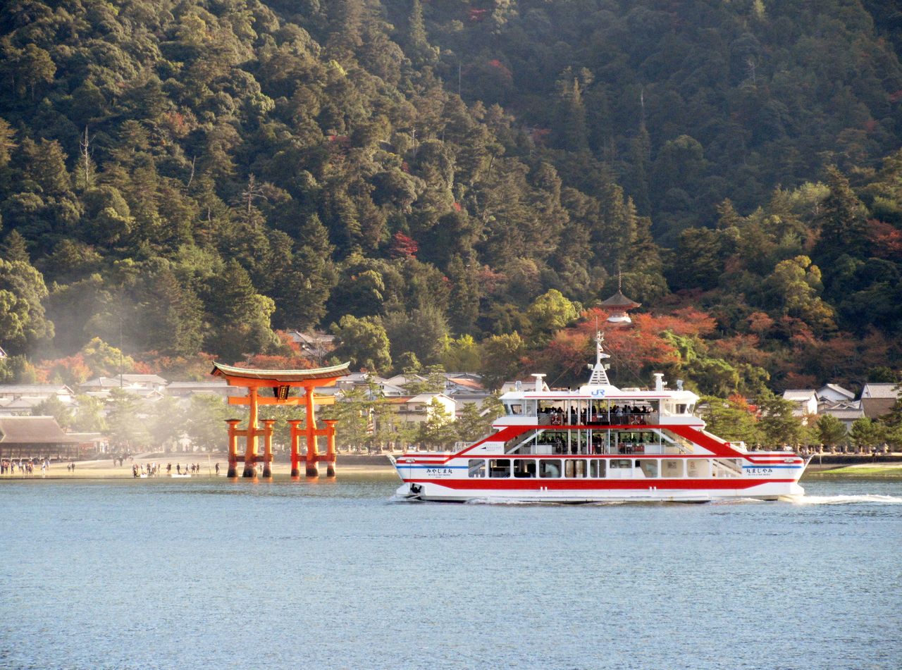 JR宮島フェリーはわずかな乗船時間ですから、デッキに立って風景を眺めながら過ごしました。フェリーはほぼピストン運転のようでした。宮島口駅から広島駅まではJRの普通に乗って30分ほどかかります。