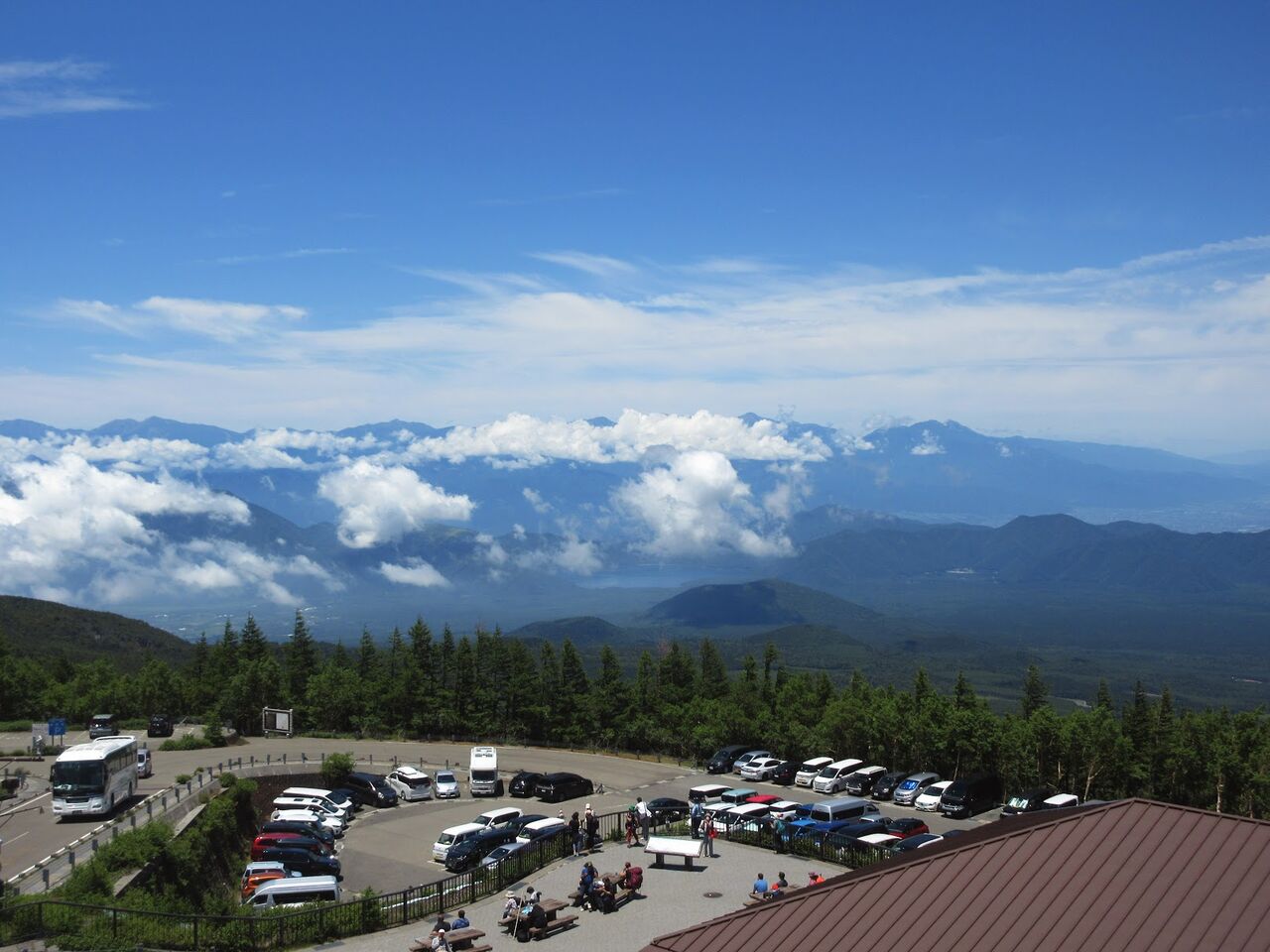富士スバルラインを走り富士山五合目へ到着。多くの車と人でごったがえしています。ガイドさんから五合目名物として「富士山めろんぱん」を勧められたので、それを食べるべく「レストハウス」へ向かいました。