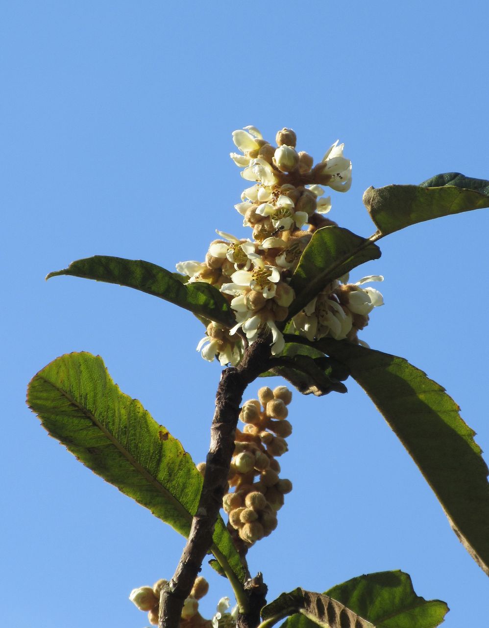 2023年01月12日 細道で道を譲りぬ枇杷の花 ◆枇杷の花 ビワの花は冬に咲きます。白色から黄白色、直径1cm前後、枝先につく円錐花序に100個前後の花が咲きます。花の最も少ない時期に咲くため、白い小さな花はよく目につきます。花期は11月から1月ごろで、花には甘い芳香があります。 タグ :#枇杷の花