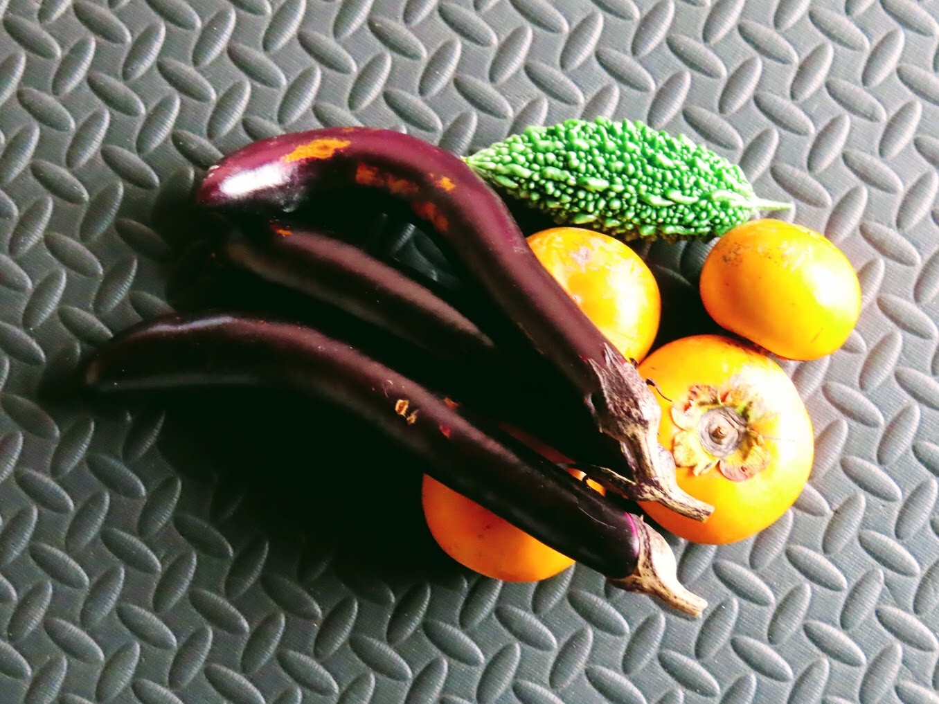 秋茄子と柿とゴーヤをいただきぬ