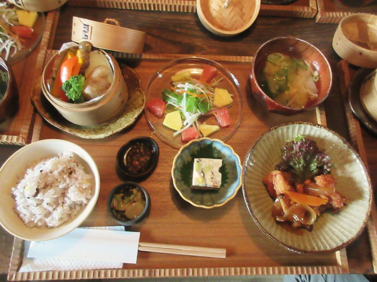 2023年10月13日 秋野菜とりどり入りしランチかな ◆秋野菜 ランチメニューは一種類です。蒸し野菜、味噌汁、サラダ、鶏の唐揚甘酢餡掛けなどが並び、白米か雑穀米が選べて食後にはドリンクがついてきます。蒸し野菜の中にはじゃがいもが半分に切って一個分入っていました。 お料理は見た目以上に食べ応えがあり、お腹いっぱいになりました。サラダのドレッシングが特に印象に残りました。 タグ :#秋野菜#古陰#北前船寄港地#兵庫県歴史的景観形成地域#日本遺産#高砂市
