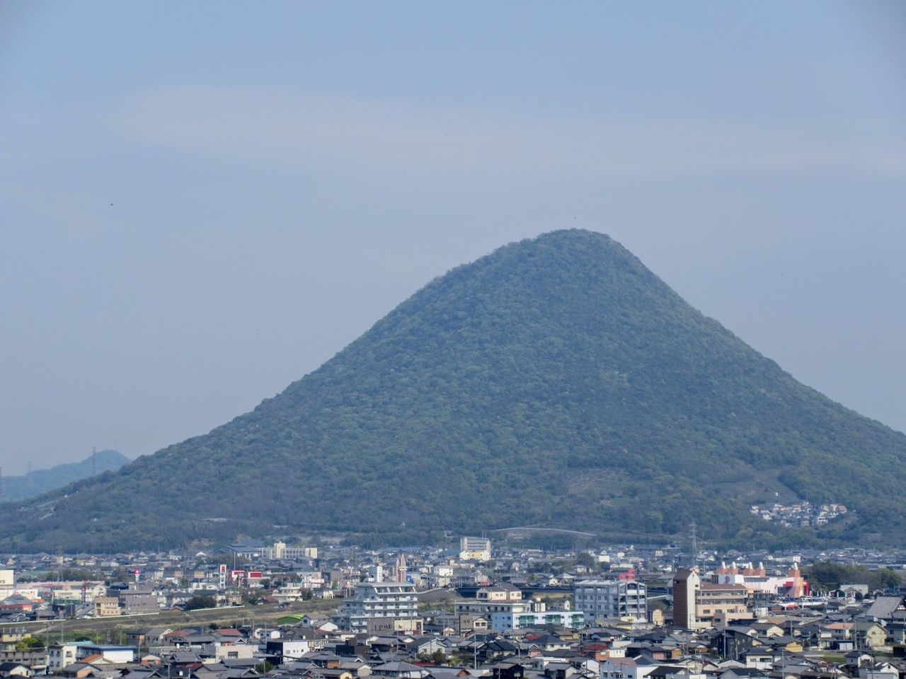 2019年05月01日 天守より望む晩春讃岐富士 ◆晩春 天守は本丸の北隅に建っており、あとは広場になっています。ここからは周囲が見渡せ、東南に讃岐富士の別名を持つ飯野山(421.87m)が見えます。丸亀市と坂出市の境に位置し「富士」の別名どおりの美しい山です。瀬戸大橋を渡ってくると真っ先に見え、四国に来たことを実感させてくれます。城内にたつ高浜虚子の「稲むしろあり飯の山あり昔今」はこの山を詠んだものです。 タグ :#丸亀城#讃岐富士#飯野山